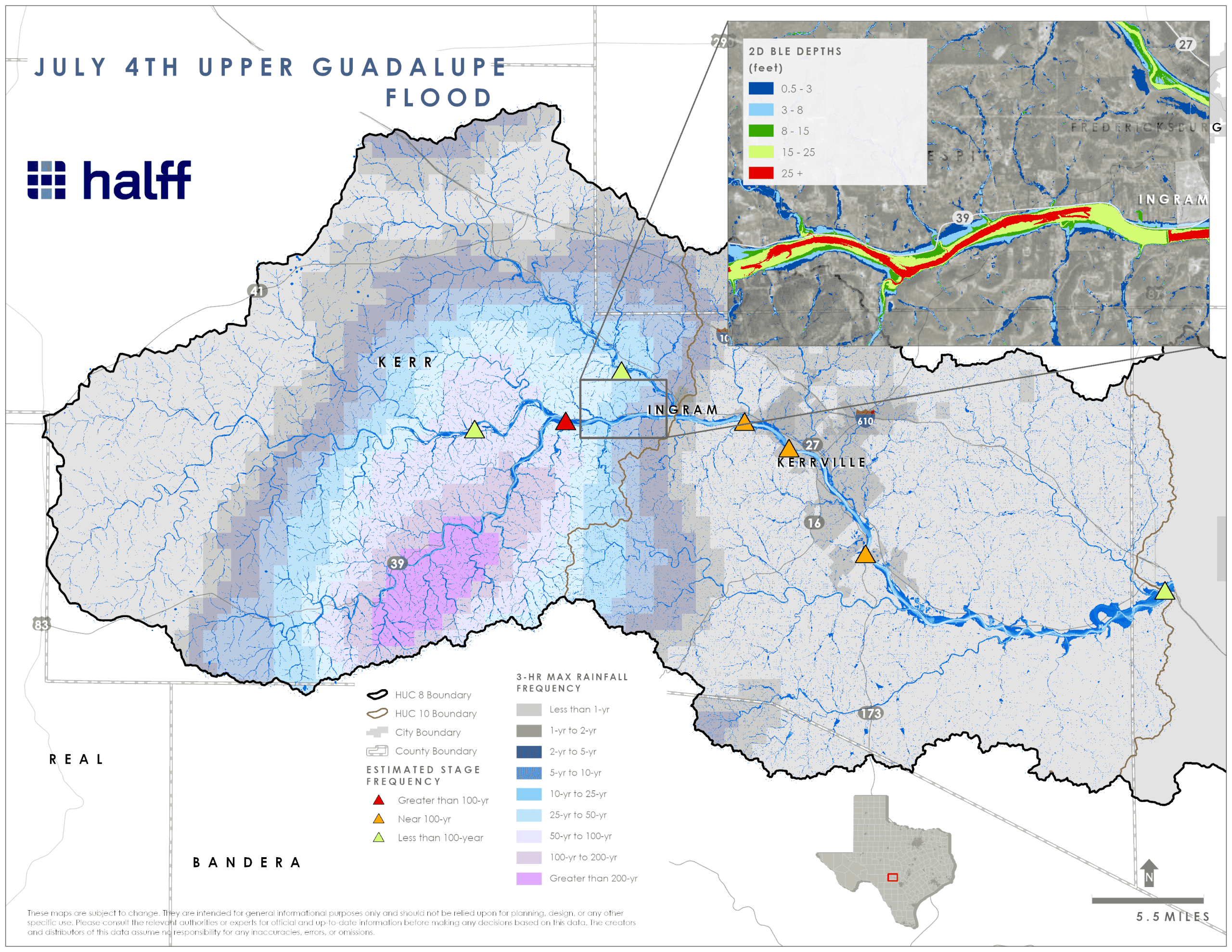 At Halff, our mission to improve lives and communities is more than a statement — it’s a call to act. In the wake of this tragedy, our Water Resources team quickly mobilized to assess the magnitude of the storm and help inform recovery and planning efforts.